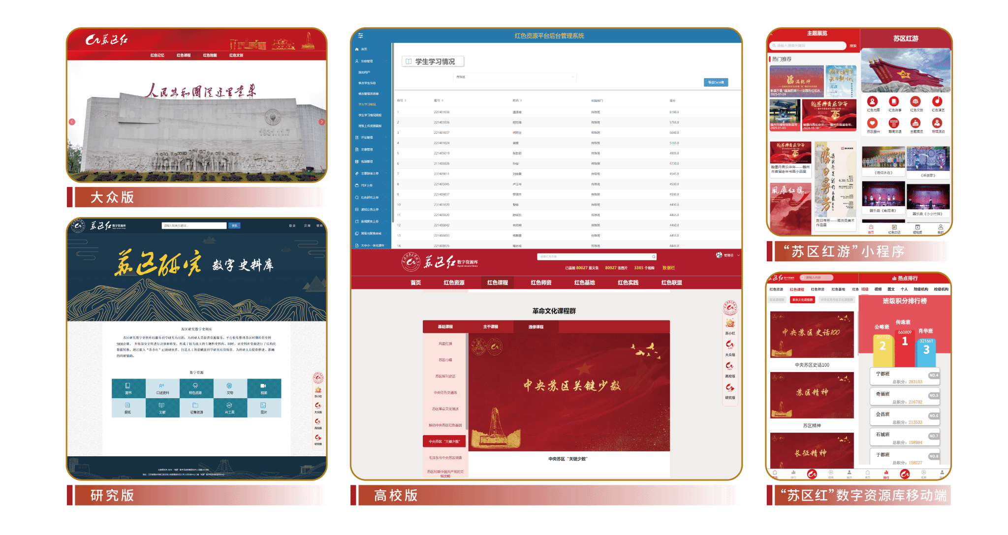 推进“苏区红”数字资源库扩容升级。截至目前,“苏区红”数字资源库形成红色文献、文物、故事、标语等十二大类资源体系,拥有“文、声、图、影、景”等多模态资源30余万个,实施完成“三网两端”(三网:大众版、高校版、研究版网站,两端:三网手机访问端口和“苏区红游”小程序)系统重构,开发了“苏区红”数字思政大模型、“苏小红”AI智能体,打造了数字地图、数字场馆、知识图谱等人工智能赋能“大思政课”实践教学系列应用场景。