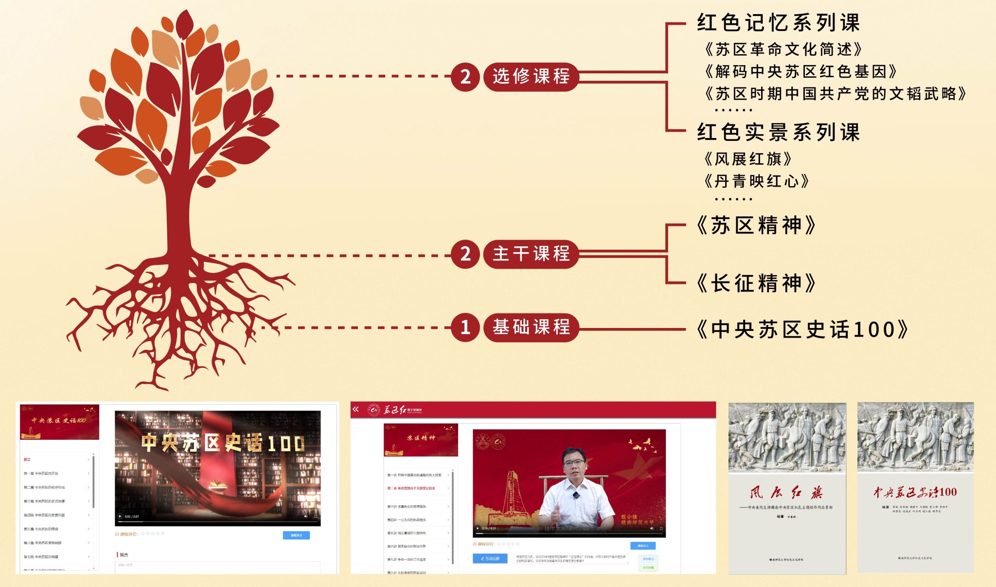 聚焦乡村振兴、产业发展、生态文明、基层治理、对外开放、科技创新、文化教育、红色旅游、非遗保护、新基建等十个领域挖掘赣南苏区振兴发展故事,创新“三讲一悟”(行业专家实例讲事理、专业教师实景讲学理、思政课教师实话讲道理,学生实践悟真理)课程范式,打造“苏区振兴”思政大课,将新时代伟大变革成功案例有机融入大学生思想政治教育体系。