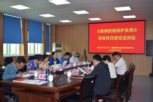 4月17日下午,《赣南脐橙保护条例》草案修改意见征询会在我校国家脐橙工程技术研究中心举行。赣州市人大常委会副主任陈黎、副校长易龙出席会议,赣州市人大常委会、赣州市果业发展中心、赣州市柑桔科学研究所、校科研处、国家脐橙工程技术研究中心等单位部门负责同志、学科带头人、科研骨干参加。