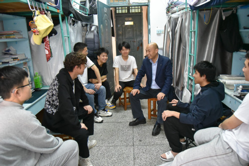 下午5点,陈义旺走访了北苑5栋学生宿舍,与同学们既谈人生理想、学习实践,也说思想情感、校园生活,耐心解答同学们提出的问题。