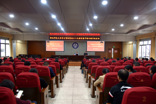 3月24日下午,学校在行政楼5楼科报厅举行学习贯彻党的二十大精神培训辅导报告会,中央宣传部巡视组专职组长刘建生作辅导报告。校党委书记朱小理主持,党委副书记胡龙华,党委委员、副校长罗序中,党委委员、纪委书记、省监委驻校监察专员于保春,党委委员、组织部部长肖笃森,党委委员、宣传部部长左群,党委委员、统战部部长黄友健,全体处级干部、部分科级干部和党支部书记参加。