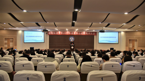 2月26日,学校2022年度考核述职考评大会在图书馆科报厅举行。校领导朱小理、陈义旺、胡龙华、刘民、邱小云、吴磊、罗序中、于保春出席,全体中层干部、附属学校负责人,以及各单位各部门教职工代表参加。副校长吴磊主持会议。