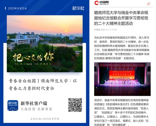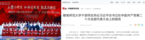 学校围绕迎接学习宣传贯彻党的二十大精神这一主线,开展了“喜迎二十大、永远跟党走、奋进新征程”主题教育实践活动,做到了党委班子带头学、党委理论学习中心组示范学、全校师生深入学,共开展对象化、分众化宣讲300余场,实现师生学习全覆盖、校内宣讲全覆盖。师生迎接学习贯彻党的二十大有关工作宣传报道动态达430余篇,被新华社客户端、学习强国、江西日报等主流媒体报道。