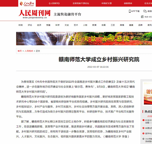 学校紧紧依托“国家脐橙工程技术研究中心”“国家级工业设计中心”“教育部人文社科重点研究基地”等“国字号”科研创新平台,主动对接和服务地方经济社会发展。乡村振兴帮扶驻村工作队获评2021年度省派驻考核“好”的等次。我校牵头的“赣南柑橘黄龙病综合防控关键技术创新与集成应用”成果经农业农村部科技发展中心组织的成果评价会认定成果整体达到同类研究的国际先进水平,其中“一园一棚”假植大苗秋季补种防病保园技术和“中心户长制”联防联控模式达到国际领先水平。与信丰县人民政府签订合作协议共建柑橘种质资源库,与南康区达成共建数字经济产业学院的合作框架,与蓉江新区、经开区达成共建赣南师范大学附属中学新校区的意向。获评国家通用语言文字推广普及工作先进集体,“心系红土·语泽赣乡”推普实践团获评全国社会实践优秀团队。