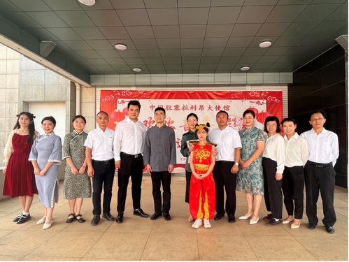 春节联欢会前,我校塞大孔院教师精心布置了茶艺、剪纸、书法、手链等中国文化体验展台。到场嘉宾纷纷走进展区,闻香品茗、剪刻图案、书写“福”字、编织手链等,深切感受浓厚的中国年味。