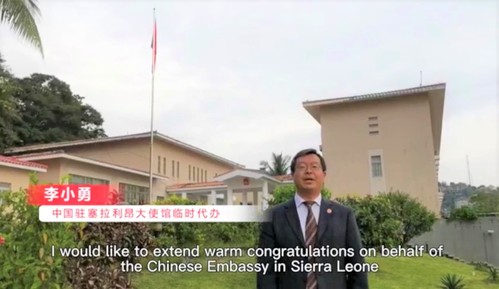 当地时间12月3日,我校塞拉利昂大学孔子学院在弗拉湾学院安菲尔广场举办成立十周年庆祝活动。中国驻塞大使馆临时代办李小勇、我校校长陈义旺以视频方式出席并致贺辞。塞拉利昂技术与高等教育部副部长卡马拉(Kamara)、基础与高中教育部部长代表拉迪波(Ladipo)、塞拉利昂大学校长代表谢里夫(Sheriff)到场出席。
