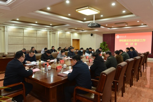 12月7日,学校在行政楼413会议室举办廉洁文化建设工作研讨会,学校党委委员、纪委书记、省监委驻校监察专员于保春出席并讲话,校党委委员、组织部部长肖笃森,党委(校长)办公室、纪委综合办公室、党委宣传部等部门负责同志、学校纪委委员、“勤廉校园”宣讲团成员、廉洁文化“一院一品”精品项目立项单位负责人、廉洁文化示范党支部书记及学校部分廉洁文化研究专家学者参会。