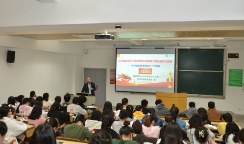 课堂上,陈义旺介绍了党的二十大会议主题和精神内涵,并结合时代背景、国际环境,为同学们讲解了中国式现代化与西方现代化的区别。陈义旺围绕学习宣传贯彻党的二十大精神,重点阐述了新时代大学生要如何学、如何做的问题,并勉励同学们要对标有理想、敢担当、能吃苦、肯奋斗的新时代好青年标准,用创新的理论去指导学习与生活,用哲学的思维去探究知识与人生,真正做到不辱使命、不负韶华、不负时代。