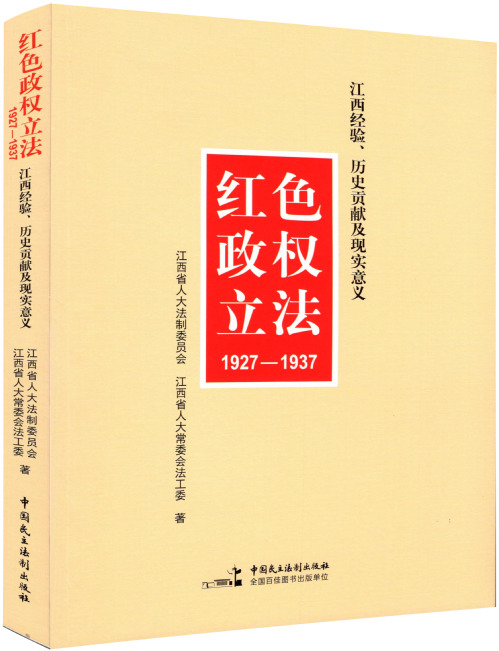 近日,由我校红色立法研究中心教师谢志民、朱文龙、陈少锋、张钰、徐辰共同撰写的学术专著《红色政权立法(1927—1937):江西经验、历史贡献及现实意义》,由中国民主法制出版社出版发行。