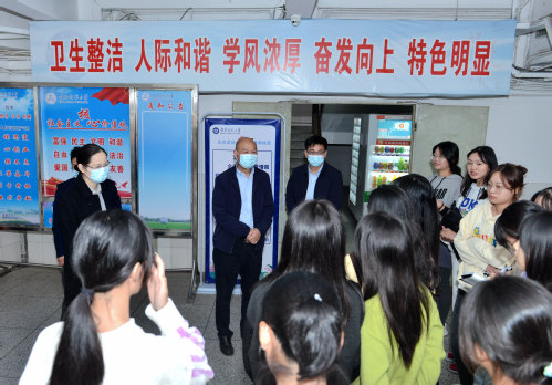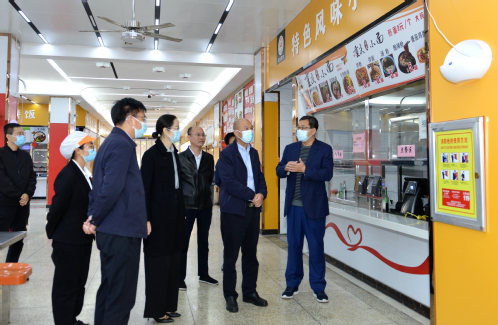陈义旺先后走访了学校南门、学生食堂、学生宿舍、商超店面、校医院和国际学术交流中心健康观察点,详细了解校门常态化管控、食堂餐饮供应品类、食品安全、商超物价、核酸检测、学生宿舍环境、健康观察点管理等情况。