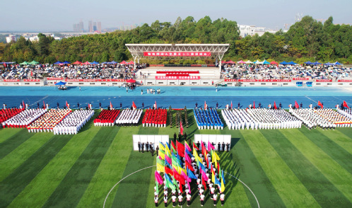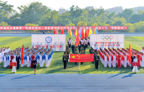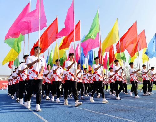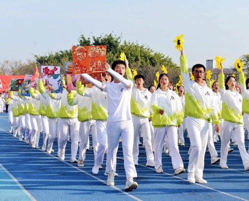 开幕式上,在国旗护卫队方阵的引领下,校旗、礼仪方阵、彩旗方阵、15个教学学院方阵队分别以新颖独特的方式依次经过主席台,展示了我校师生良好的精神风貌。
