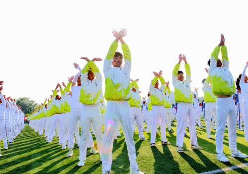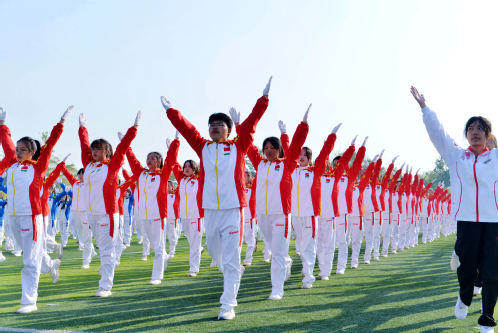 各学院方阵队入场后,体育学院学生廖志成、体育学院教师汪淑玲分别代表运动员、裁判员宣誓。随后,举行了广播体操比赛。