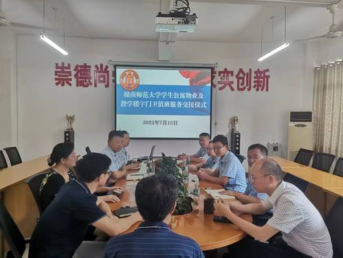 近日,我校黄金校区物业管理服务交接仪式在后勤管理处311会议室举行。招标采购中心、学生工作处、后勤管理处负责同志,移交方湖南保利天创物业发展有限公司、接管方厦门晟洲物业管理有限公司负责人,双方项目经理参加交接仪式。
