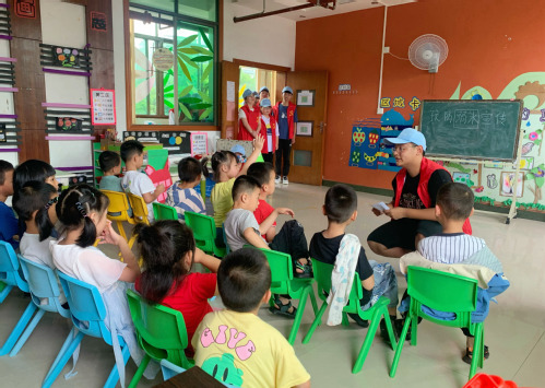 防溺水是青少年学生安全工作的重中之中。当前,进入暑期,又正值汛期,乡村留学儿童较多,安全教育任务重。乡村振兴实践团积极配合当地政府工作,走进“童心港湾”积极开展防溺水“六不”宣传,走家串户将防溺水《一封信》《安全承诺书》送达每一位家长,沿河道、水塘巡查巡防,设立安全警示标志,与当地政府工作人员一道抓好严防学生溺水工作,用心用情用力守护学生健康成长,保障学生生命安全。