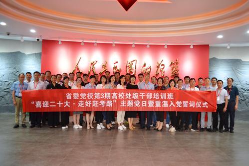 在校期间,调研组一行召开了高校服务赣南苏区振兴发展专题调研座谈会,举行了“喜迎二十大·走好赶考路”主题党日暨重温入党誓词仪式,现场考察调研了学校中央苏区历史博物馆、红色文化育人成果展馆、国家脐橙工程技术研究中心、客家民俗博物馆等。