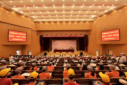 7月4日,我校大学生赴全南县暑期“三下乡”社会实践活动启动仪式在全南县举行。校党委委员、副校长刘民出席并讲话,全南县委常委、县政府副县长杨坚出席并致辞。校团委、物理与电子信息学院负责同志,全南县委人才办、团县委、乡(镇)有关负责同志及我校师生志愿服务队成员共计160余人参加。启动仪式由全南县人大常委会副主任赖槐海主持。