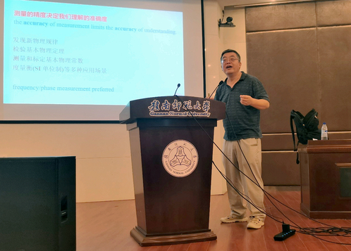 讲座上,尤力以《量子科技助力精密测量》为题,介绍了精密测量物理的研究现状及发展前景,深入讲解了利用冷原子实现量子精密测量的研究结果和进展,并与现场师生互动交流,解答师生关注问题。参加讲座的师生表示,讲座内容紧跟学术前沿问题,开阔了视野和眼界。
