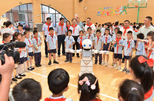 在各附属学校,朱小理一行先后参加师大附小首届STEAM教学成果展、第二附小“双减”教学成果展暨首届校园艺术节和幼儿园“快乐无限,缤纷过六一”等活动,与孩子们亲切交流互动,送上崭新的校徽和节日礼物,祝福孩子们健康快乐、茁壮成长,并向老师们表示亲切慰问。