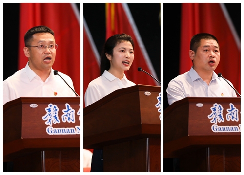 学生工作目标管理考核先进单位代表、经济管理学院党委副书记黄晖,五四红旗团委代表、物理与电子信息学院团委书记龚利明,先进个人代表、马克思主义学院2019级研究生薛芳同学先后在大会上作典型发言。此外,全场团员青年一起重温了入团誓词。