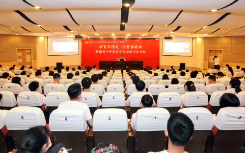 5月3日,五四青年节前夕,学校党委书记卢超以《学百年团史、担青春使命——党领导下中国青年运动的百年历程》为题,给我校团员青年上了一堂精彩的主题团课。学校党委委员、宣传部部长左群,校团委负责同志、各基层团委负责人,团员青年代表参加。