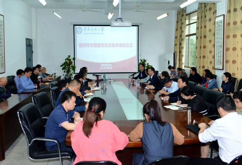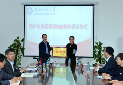 4月23日,学校举行“赣州市巾帼建功先进集体”奖牌颁发仪式,校党委副书记胡龙华出席并为获奖集体颁发奖牌,校工会负责同志,马克思主义学院领导班子成员及思政课教研室全体教师参加。