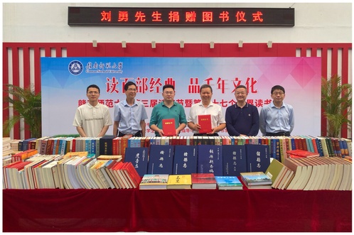 在我校第三届读书节暨第27个读书日活动举办之际,赣州市人大常委会副厅级干部刘勇及夫人邹霞女士再次向我校捐赠440册图书资料。4月25日,学校在图书馆举行图书捐赠仪式,刘勇及校党委委员、副校长易龙,赣州市文广新旅局党组成员、副局长张伟,学校图书馆负责同志出席。