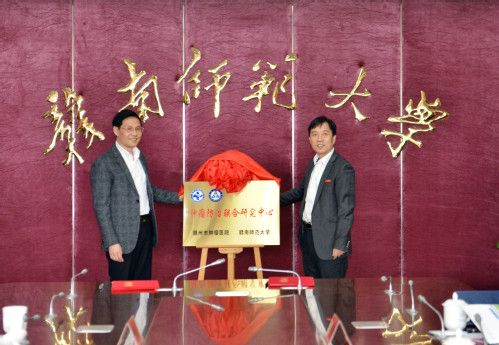 签约仪式后,卢超、黄兴伟代表双方为“肿瘤防治联合研究中心”揭牌。