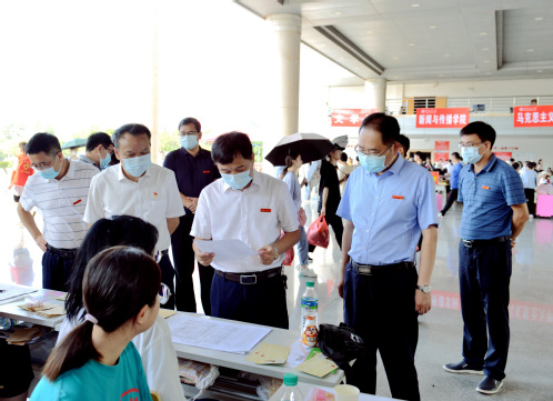 校领导来到一教大厅、学校南门迎新报到点,查看新生报到情况,与新生亲切交谈,欢迎他们加入赣南师范大学这个大家庭,叮嘱他们加强自我防护,积极配合学校常态化疫情防控工作。校领导还亲切慰问了迎新工作人员和学生志愿者,要求大家要严格按照入学报到流程,耐心细致做好服务工作。