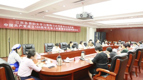 7月6日,江西省妇女联合会召开各界妇女座谈会,学习贯彻习近平总书记在庆祝中国共产党成立100周年大会上的重要讲话精神。省妇联党组书记、主席王庆,党组成员、副主席肖晓兰、吴艳玲,二级巡视员李景芝出席会议。我校马克思主义学院2019级学科教学(思政)专业硕士研究生薛芳作为优秀女大学生代表受邀参会并发言。