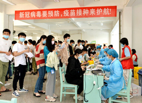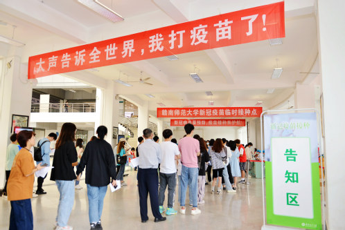 此前,根据江西省、赣州市新冠疫苗接种工作统一部署,学校动员组织师生到校外接种点接种新冠疫苗1580剂次。为方便师生接种,学校积极与赣州市疫情防控指挥机构沟通,在校内设立临时接种点,邀请赣州市人民医院预防接种团队进校开展接种工作。5月18日至21日,学校采取“分时、分批”的方式,为师生接种腺病毒载体新冠疫苗、第一剂新冠病毒灭活疫苗共计17261剂,有效构建了校园免疫屏障。其中,为妥善解决2021届毕业生疫苗接种问题,学校积极争取赣州市、赣州蓉江新区疫情防控指挥机构的支持,为毕业生统一接种了腺病毒载体疫苗,这是该类型疫苗在江西省首次投入使用。