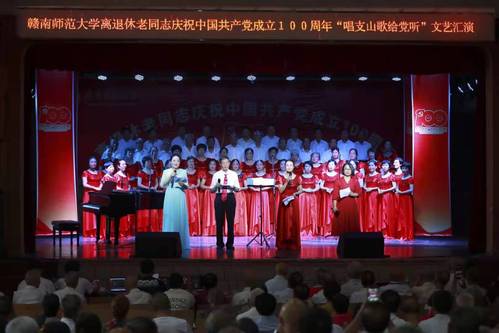 6月22日上午,学校离退休党委、老年大学在章贡校区演奏厅联合举行庆祝中国共产党成立100周年“唱支山歌给党听”专题文艺汇演。党委书记、校长卢超,党委委员、副校长邱小云,老年大学校长孙弘安等与离退休9个党支部及老年大学350余名老同志欢聚一堂,一同观看文艺演出。