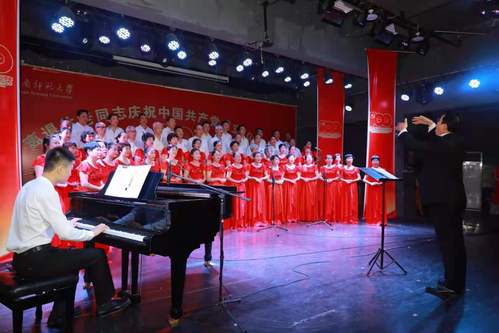 演出在老年大学“烛光”合唱团与退休第二党支部党员们演唱的《唱支山歌给党听》《我的祖国》激扬歌声中拉开序幕。一首首动人心弦、高亢豪迈的歌曲,讴歌着中国共产党波澜壮阔的奋斗历程和辉煌成就。诗朗诵《党啊,我想为您纵情歌唱》饱含着学校208位离退休党员们对党无限的忠诚与热爱;《我爱你中国》《人民军队忠于党》《中国人民志愿军战歌》《共和国之恋》表达了对党对军队对国家的浓浓爱意;《没有共产党就没有新中国》《社会主义好》《我们走在大路上》《新长征再出发》展示了中华民族在沧桑巨变中走向辉煌,为实现中华民族伟大复兴中国梦的光辉历程......一支支红色歌曲在剧场上空飘荡,一曲曲激昂旋律在老同志们心头唱响。