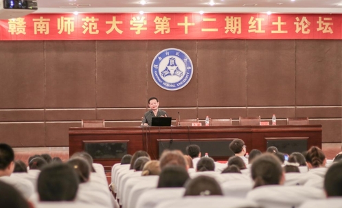 5月28日,由学工处、红色文化学院主办,历史文化与旅游学院和美术学院承办的第十二期“红土论坛”在图书馆科报厅开讲。开国少将严庆堤侄孙、瑞金市红色文化研究会会长、市作家协会主席、中华苏维埃共和国史研究院院长严帆受邀为我校师生作宣讲报告。