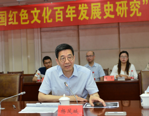 在全校深入推进党史学习教育之际,6月6日,“中国红色文化百年发展史研究”学术研讨会在我校召开。中国人民大学中共党史党建研究院执行院长杨凤城教授,校党委副书记胡龙华,副校长、中国共产党革命精神与文化资源研究中心主任、国家社科基金重大项目“中国红色文化百年发展史研究”首席专家邱小云出席,学校党委宣传部、中国共产党革命精神与文化资源研究中心、《红色文化学刊》编辑部、马克思主义学院负责同志和有关人员,国家社科基金重大项目课题组成员参加。会议由邱小云主持。