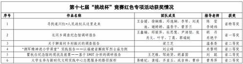 在本届大赛中,我校竞赛成绩取得了历史性突破,选送的16个竞赛项目全部获奖。其中,10个主赛道项目获一等奖1项,二等奖3项,三等奖6项;6个红色专项赛项目获特等奖1项,一等奖1项,二等奖4项。学校获评优秀组织奖,匡芳光获先进个人。