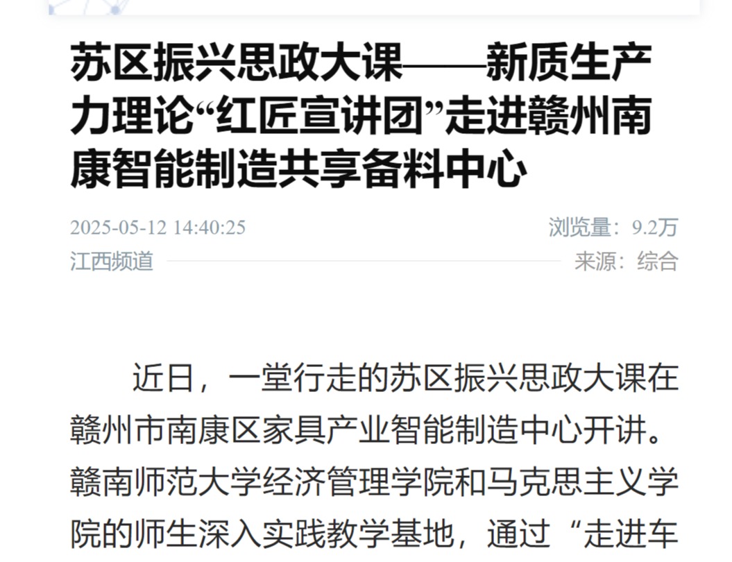 上一条:【学习强国】“三讲一悟"苏区振兴思政大课:新质生产力赋能地方特色产业高质量发展