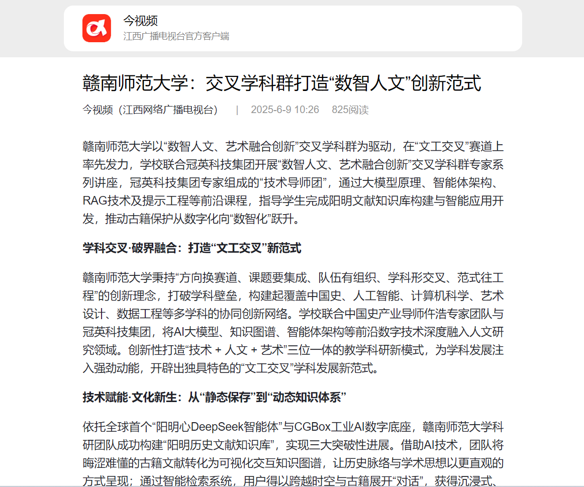 下一条:【中国网】赣南师范大学:交叉学科群打造“数智人文”创新范式