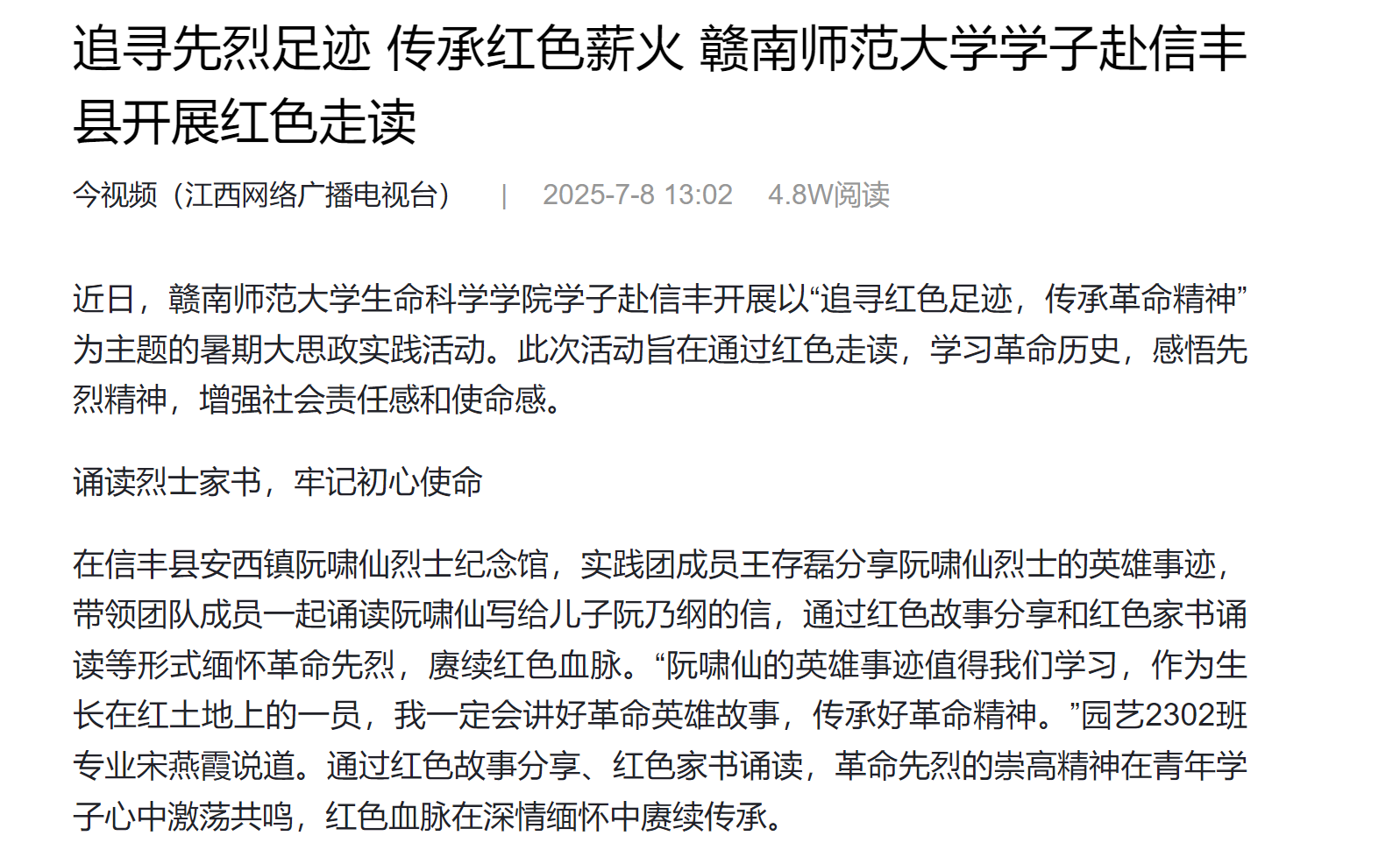 上一条:【江西网络广播电视台】赣南师范大学开展“强国有我 青春有为”暑期社会实践活动