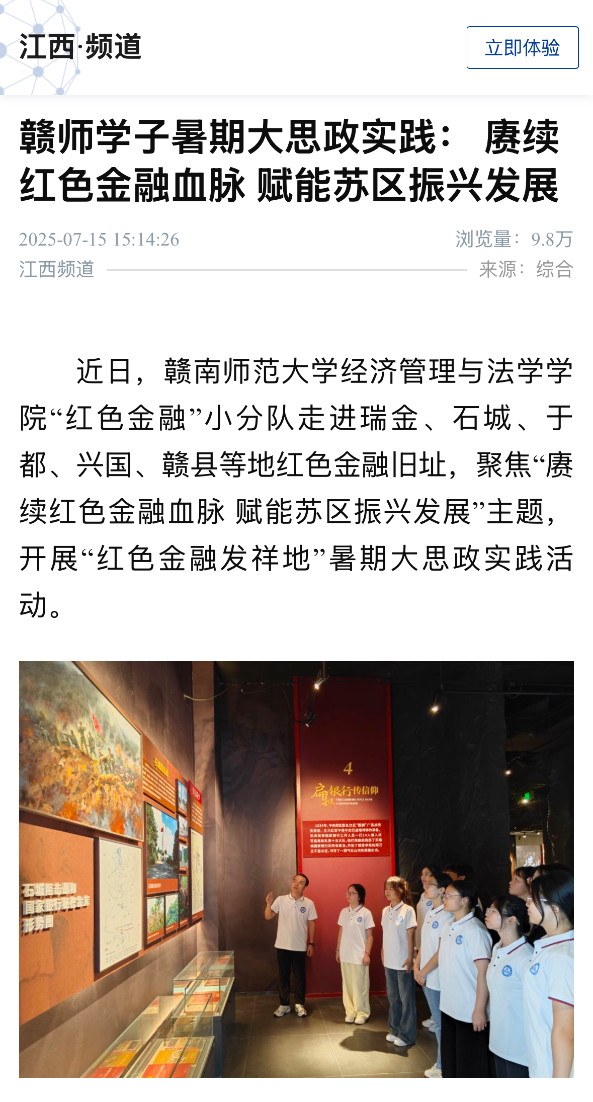 下一条:【学习强国】赣师学子暑期大思政实践:赓续红色金融血脉 赋能苏区振兴发展