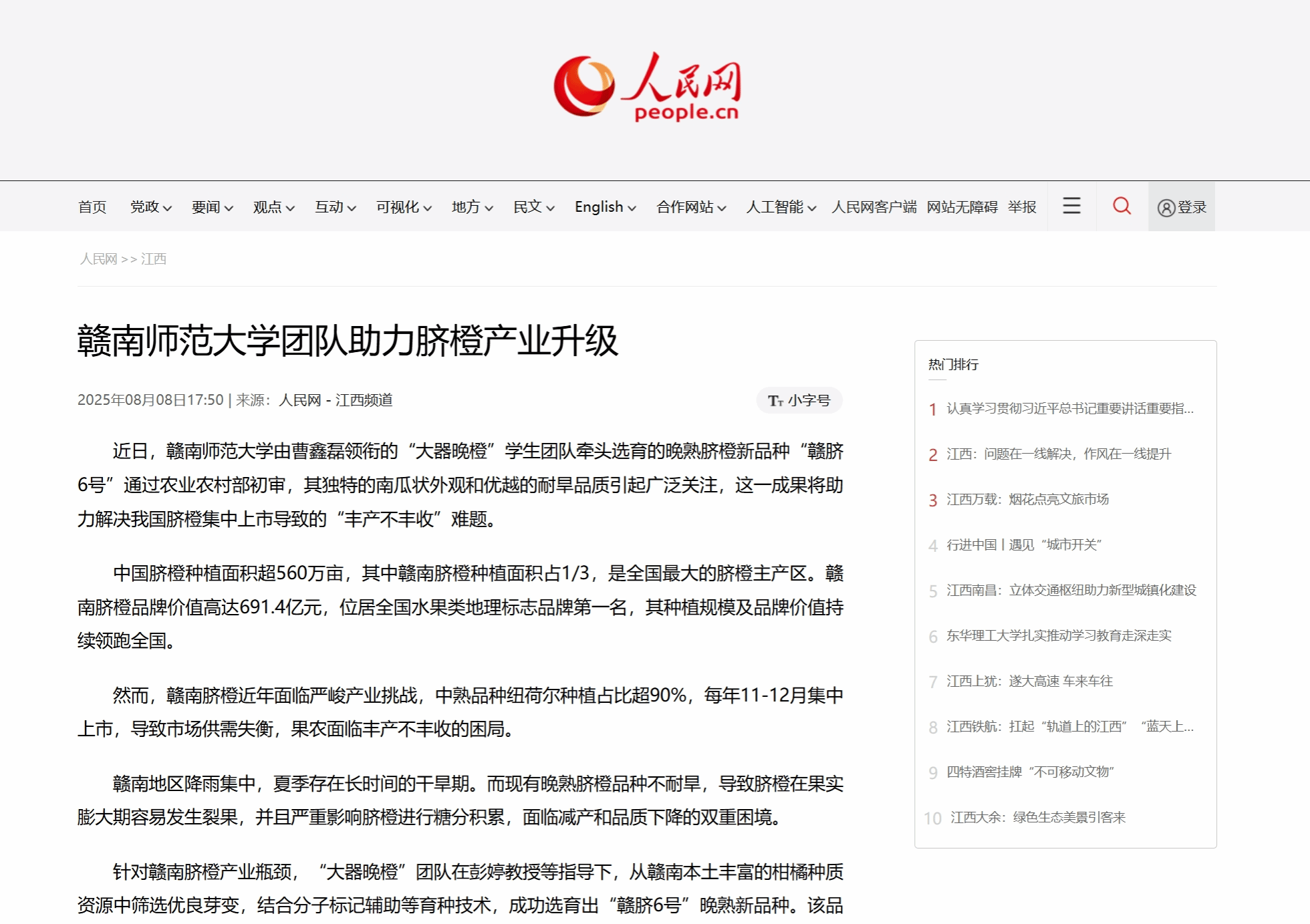上一条:【中国网】赣南师范大学“虱拿橘稳”团队:用基因密码筑牢柑橘产业绿色长城