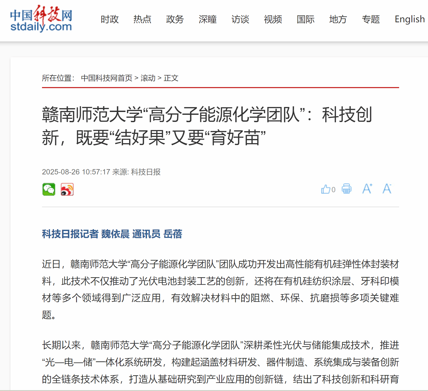 下一条:【科技日报】赣南师范大学“高分子能源化学团队”:科技创新,既要“结好果”又要“育好苗”