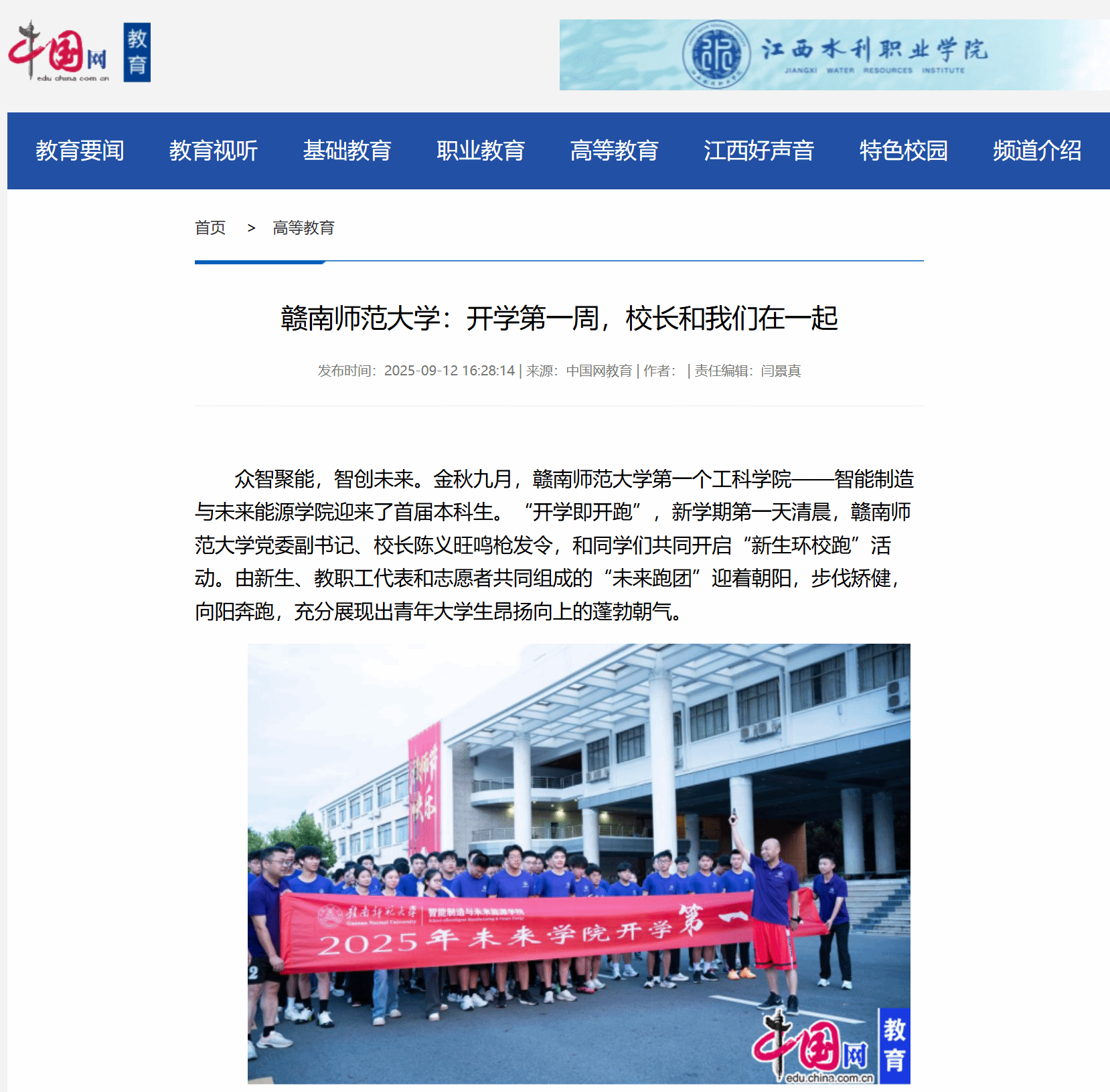上一条:【中国大学生在线】赣南师范大学:开学第一周,校长和我们在一起
