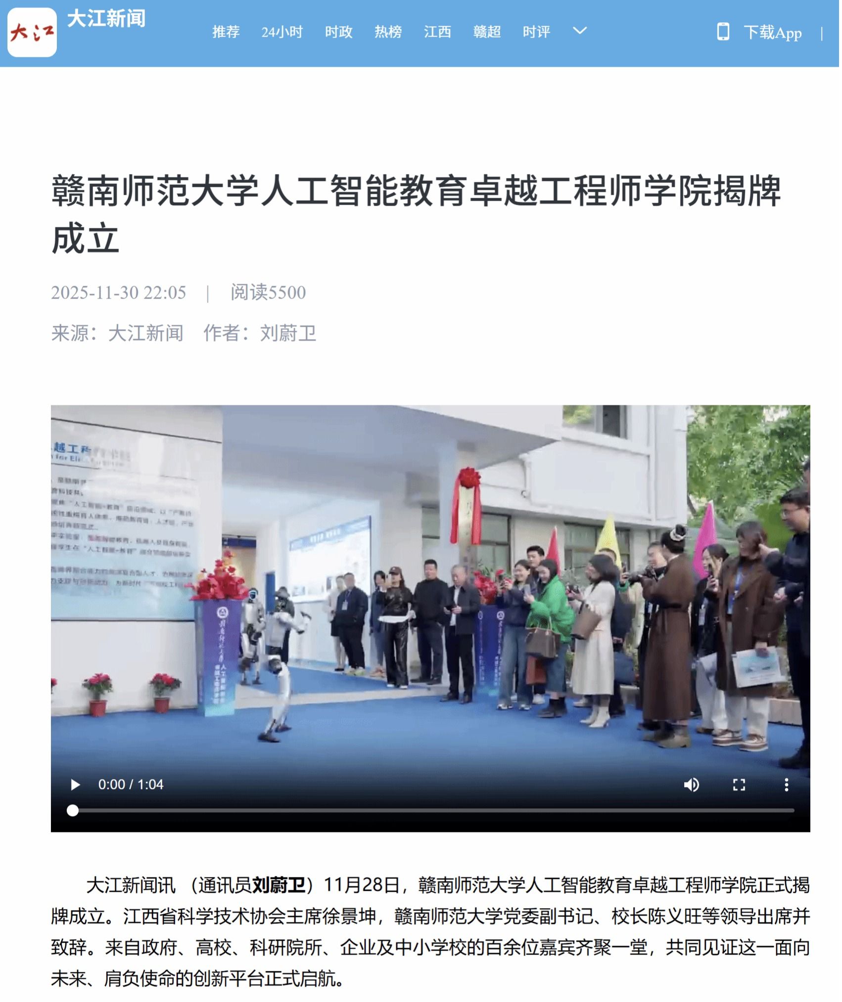 下一条:【赣州新闻联播】赣南师范大学人工智能教育卓越工程师学院揭牌成立