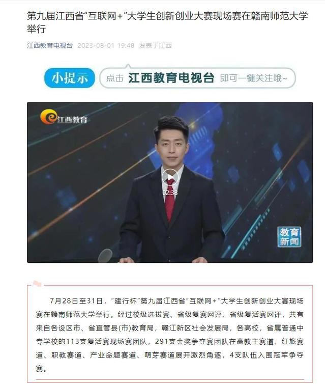 下一条:【江西网络广播电视台】“建行杯”第九届江西省“互联网+”大学生创新创业大赛现场赛在赣南师范大学举行