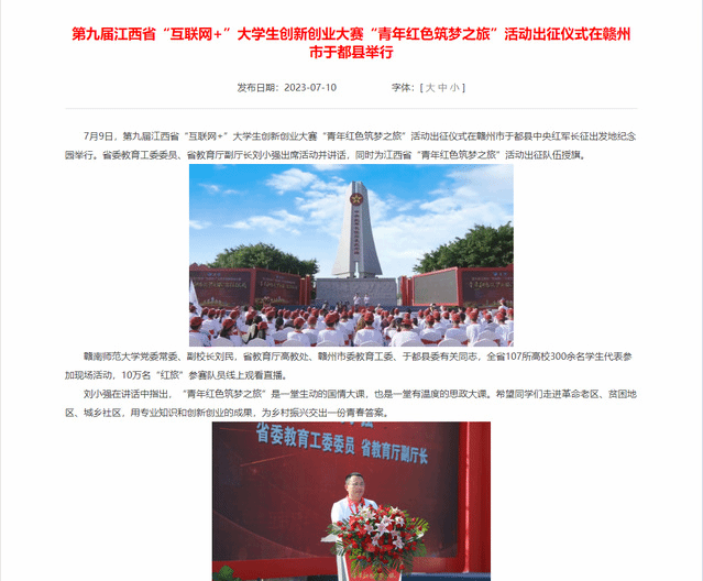 上一条:【学习强国】第九届江西省“互联网+”大学生创新创业大赛“青年红色筑梦之旅”出征仪式在赣州于都举行