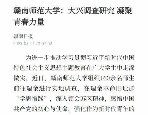 下一条:【学习强国】赣南师范大学:大兴调查研究 凝聚青春力量