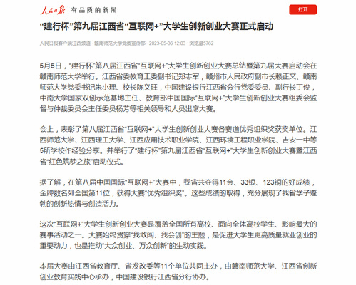 下一条:【江西教育-微信公众号】“建行杯”第九届江西省“互联网+”大学生创新创业大赛启动会