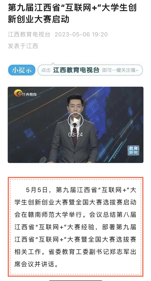 下一条:【江西卫视】赣州:第九届江西省“互联网+”大学生创新创业大赛启动