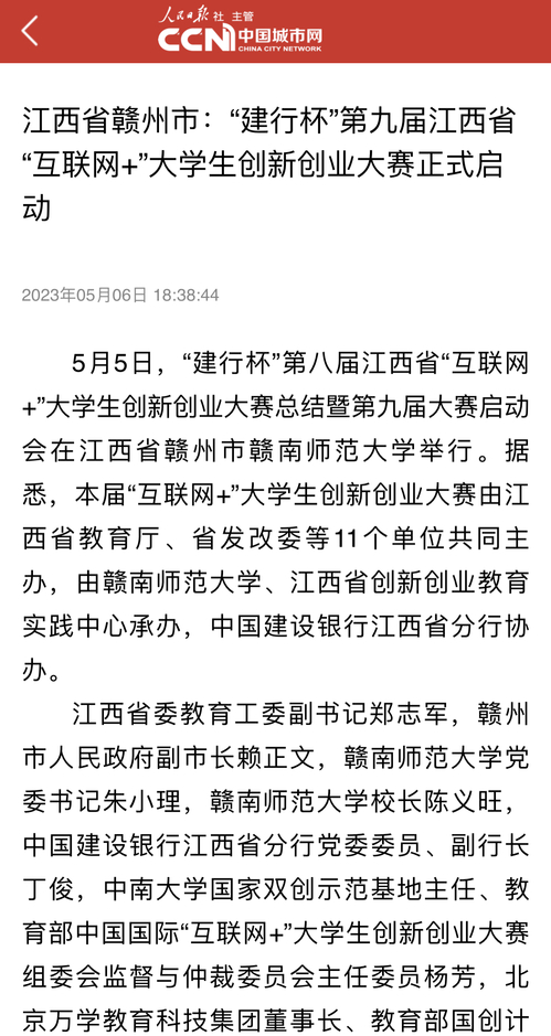 下一条:【人民日报】“建行杯”第九届江西省“互联网+”大学生创新创业大赛正式启动
