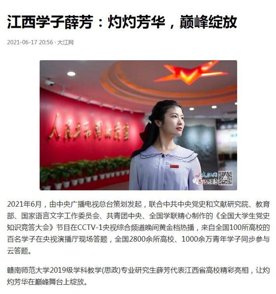 上一条:【新华社】江西学子薛芳:灼灼芳华,巅峰绽放